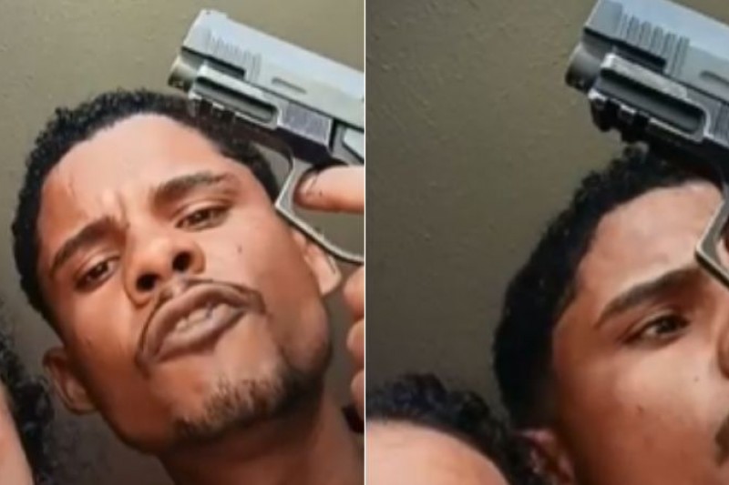 Nas imagens, a mulher aparece com a criança no colo, abalada e com expressão de medo, enquanto o homem, visivelmente alterado, empunha um revólver e faz ameaças. Ele exigia que a Polícia Militar se afastasse e solicitava a presença da imprensa no local.