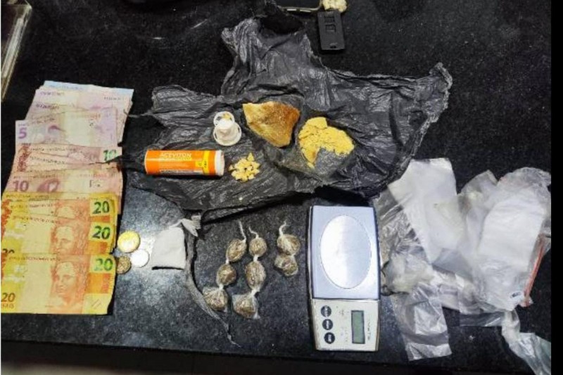 A guarnição realizava patrulhamento pela Rua 22 de Abril quando avistou um homem em atitude suspeita, conduzindo uma motocicleta. Durante a abordagem, foram encontrados com ele 11 gramas de maconha, 13,8 gramas de cocaína, 77 gramas de crack e um comprimido de êxtase.