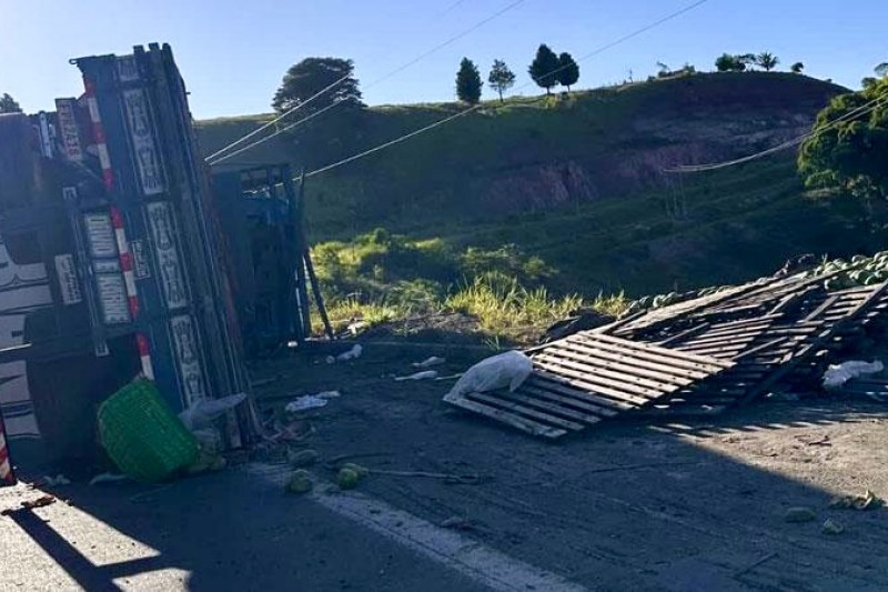 Na noite desta sexta-feira (6), um caminhão carregado de mamões tombou na BR-101, no trecho entre os municípios de Eunápolis e Itabela. Apesar do impacto do acidente, não houve registro de vítimas.