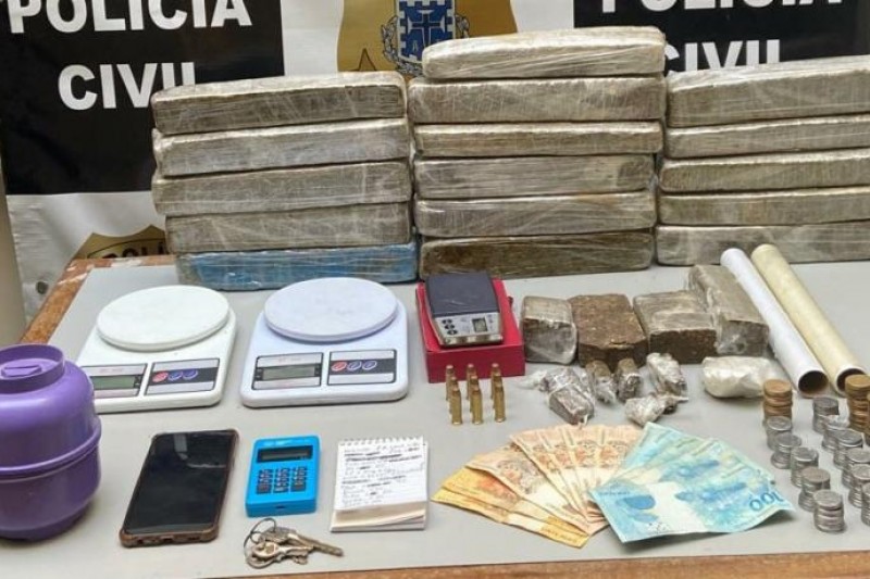 Além dos 16 tabletes de maconha, também foram apreendidos uma pedra de cocaína, três balanças, nove munições, apetrechos para acondicionar as drogas e a quantia de R$ 886. O hoemm foi autuado em flagrante por tráfico de drogas e posse ilegal de munição.